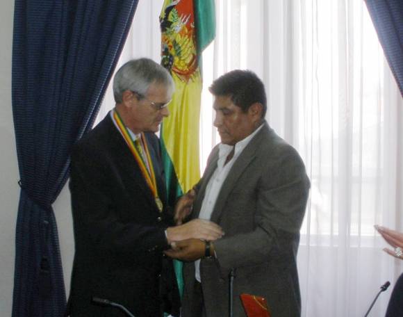 Distinguen a Hugo Levato en Bolivia