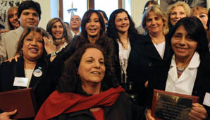 Los docentes galardonados en Casa de Gobierno por sus emprendimientos y compromiso educativo fueron Yolanda Arredondo, de San Juan; María Esteche, de Tierra del Fuego; Alba Elizabeth Mancinella, de Buenos Aires; Gustavo Adolfo Paz, de Tierra del Fuego; Rubén Ponce, de Salta; Marta Ruta, de Neuquén; Fanny Gordillo, de Santa Cruz; Jorge Quezada, de Río Negro; Santa Aquino, de Misiones y Héctor Nuarte, de Mendoza, entre otros.