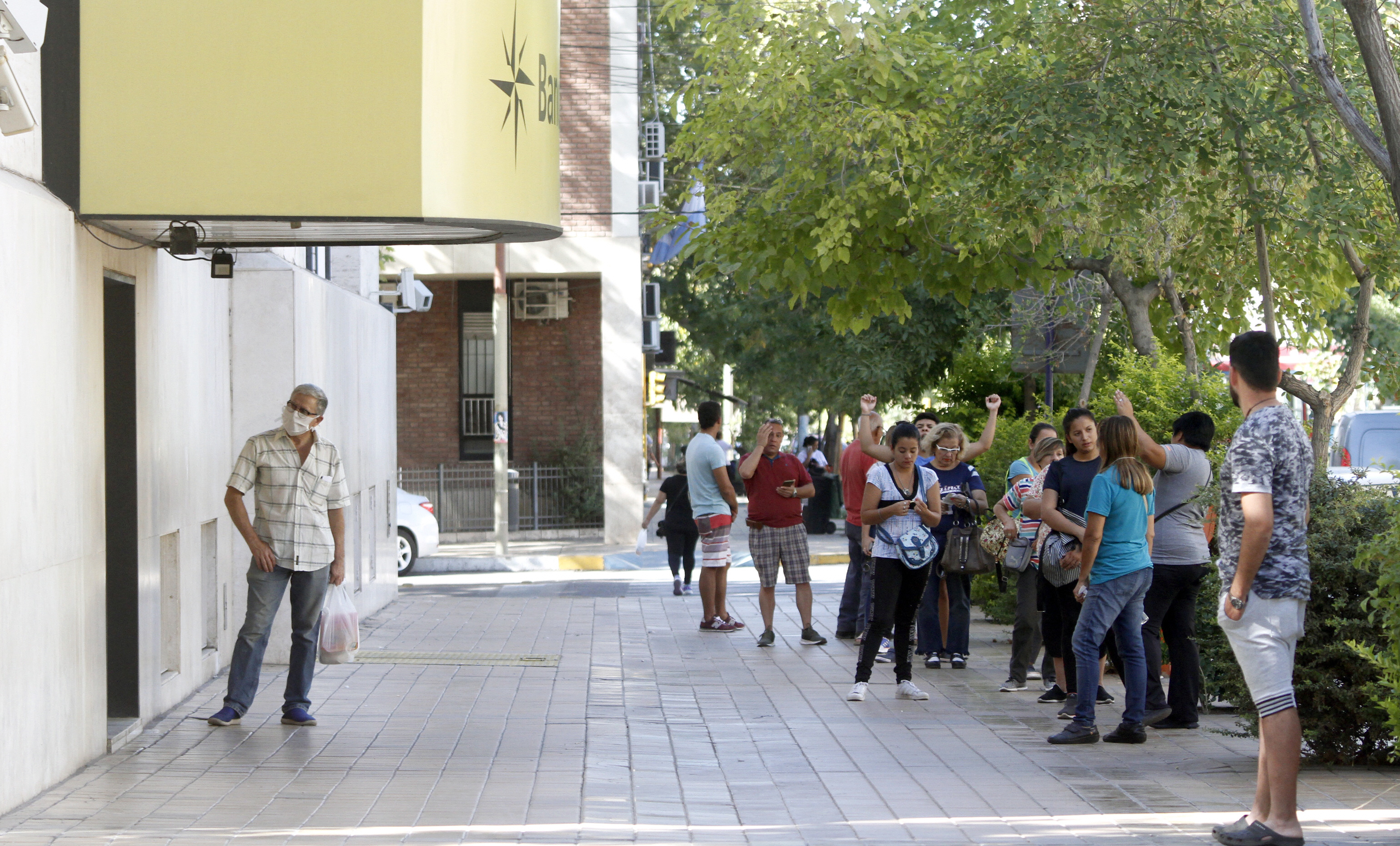 En las filas que se formaban para operar en cajeros automáticos o ingresar a farmacias o supermercados no siempre se respetaba la orden de separación mínima de 1 metro entre las personas.