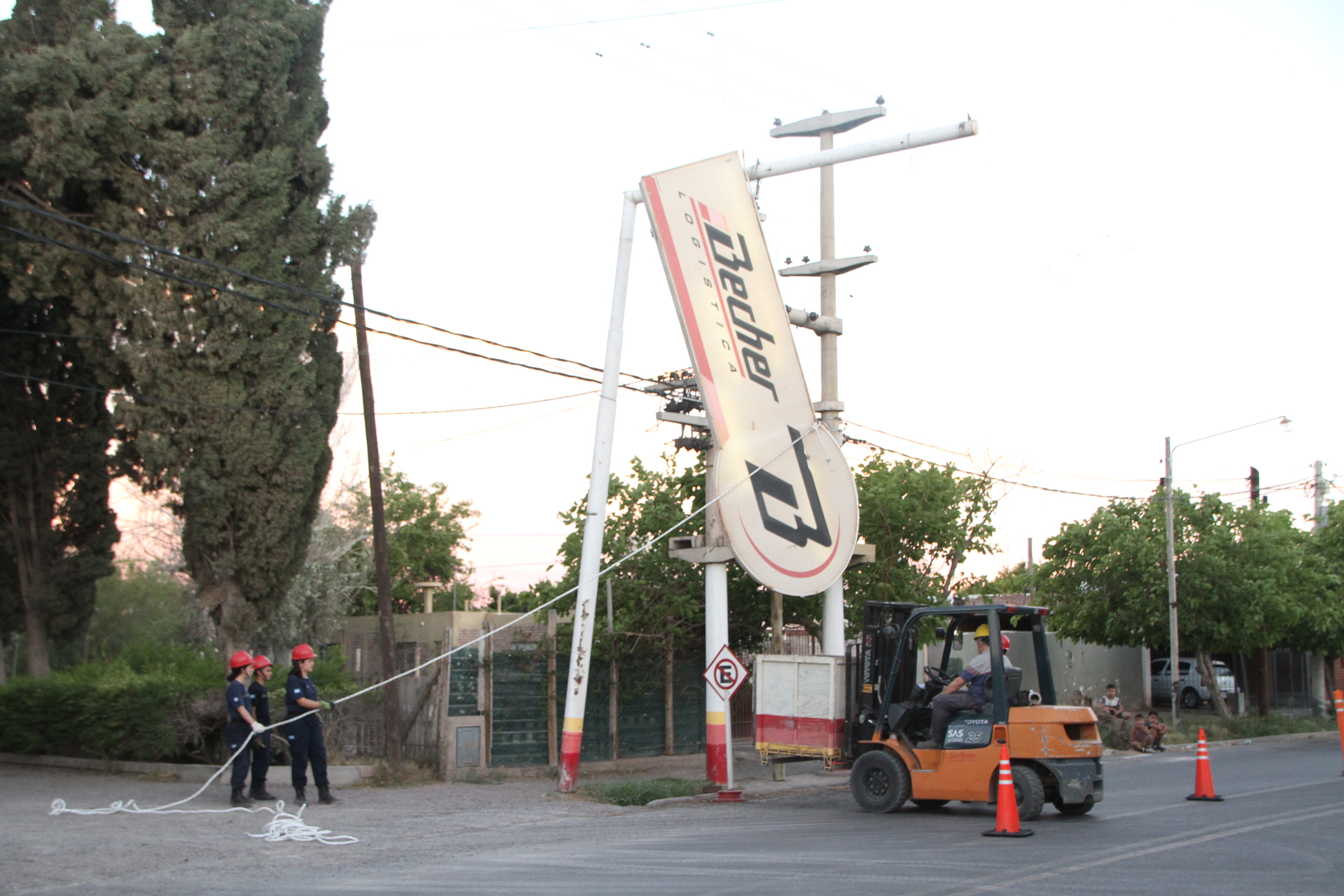 Por otro lado, en General Acha y Cano, Capital, un cartel colgante de gran porte debió ser retirado de la vía pública por el peligro de descolgarse y caer encima de vehículos o incluso personas. Finalmente, cayó un árbol en San Miguel, 200 metros al sur de Ignacio de la Roza, sin provocar otras consecuencias.