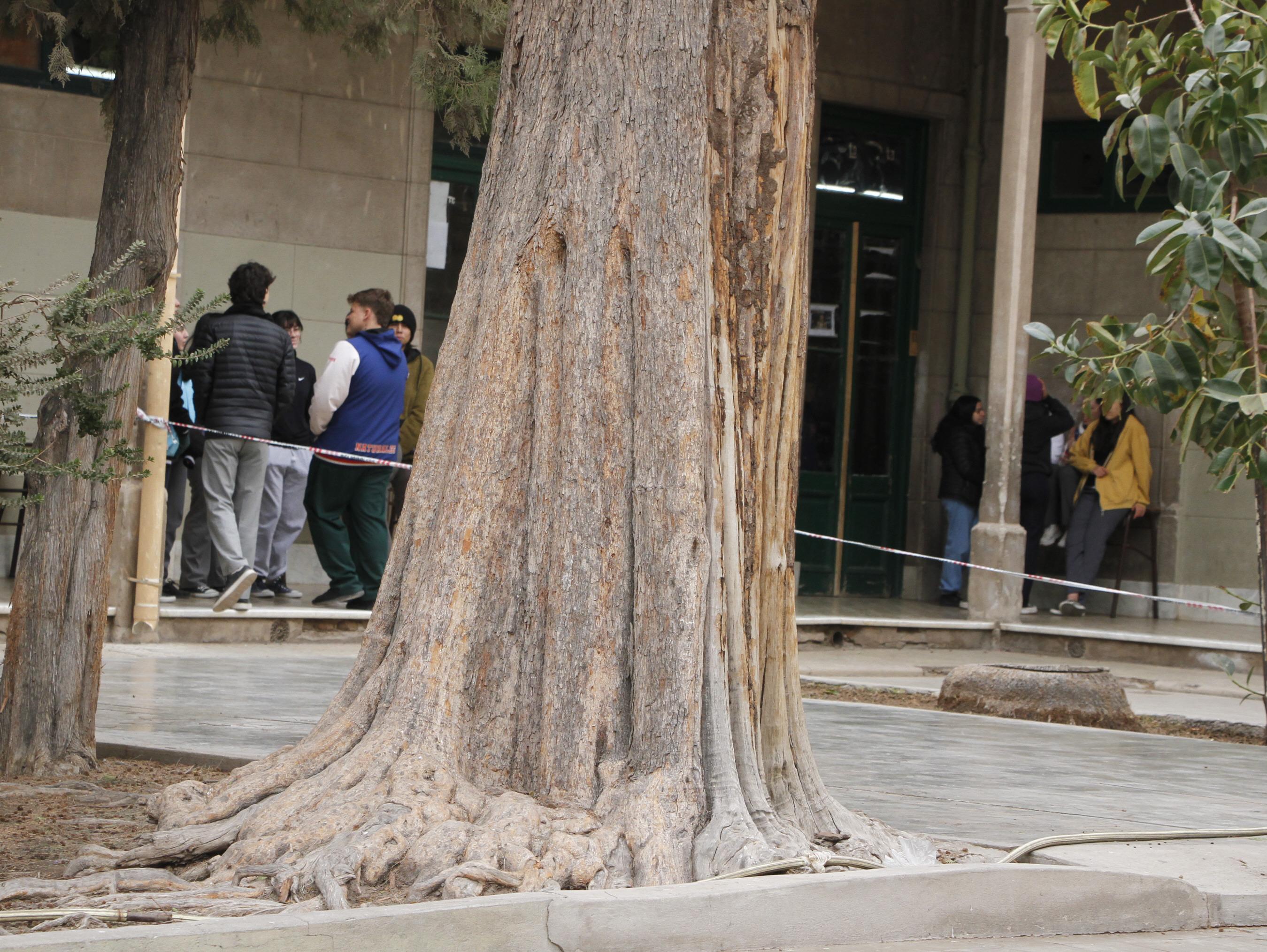 Una de las medidas preventivas que tomaron fue rodear la casuarina con cintas de peligro y no permitir la presencia de los alumnos en este patio, hasta tanto se erradique el árbol peligroso.