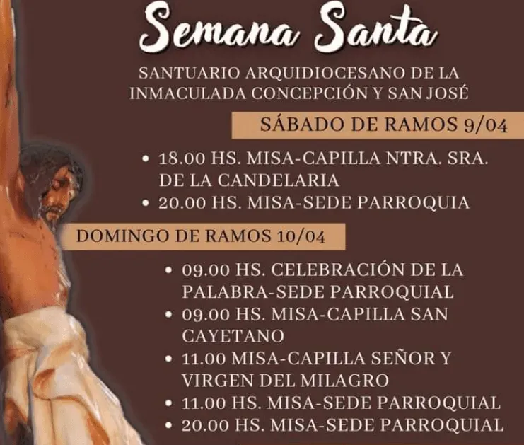 En la Iglesia Catedral, monseñor Jorge Lozano celebrará la Misa de Ramos, a las 11. Mientras que, el Lunes Santo celebrará misa en la Catedral, a las 20; y el Martes Santo lo hará en el Seminario, a las 20. El Miércoles Santo encabezará la Misa Crismal, con la presencia de todos los sacerdotes de la provincia, en la Catedral, a las 20. Y el Jueves Santo hará la celebración de lavatorio de los pies en el Servicio Penitenciario. El Viernes Santo estará en San Expedito, Bermejo, donde realizará la Celebración de la Pasión a las 15. Cerrará las actividades el Sábado Santo a las 21, con la Vigilia Pascual en la Catedral.