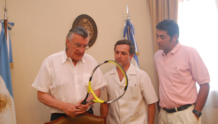 El mandatario dispuso hoy la entrega de las raquetas a la Fundación que preside el doctor Pablo Larrea y la entidad podrá realizar una subasta, un sorteo, una licitación o lo que dispongan para conseguir fondos que posibiliten a la institución seguir atendiendo a los chicos indigentes de todo San Juan.
