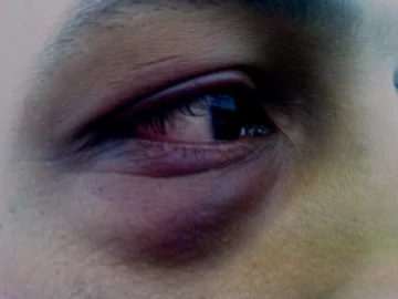 Uno de los damnificados recibió una trompada en el ojo derecho, rompiendo los lentes y provocándole lesiones.