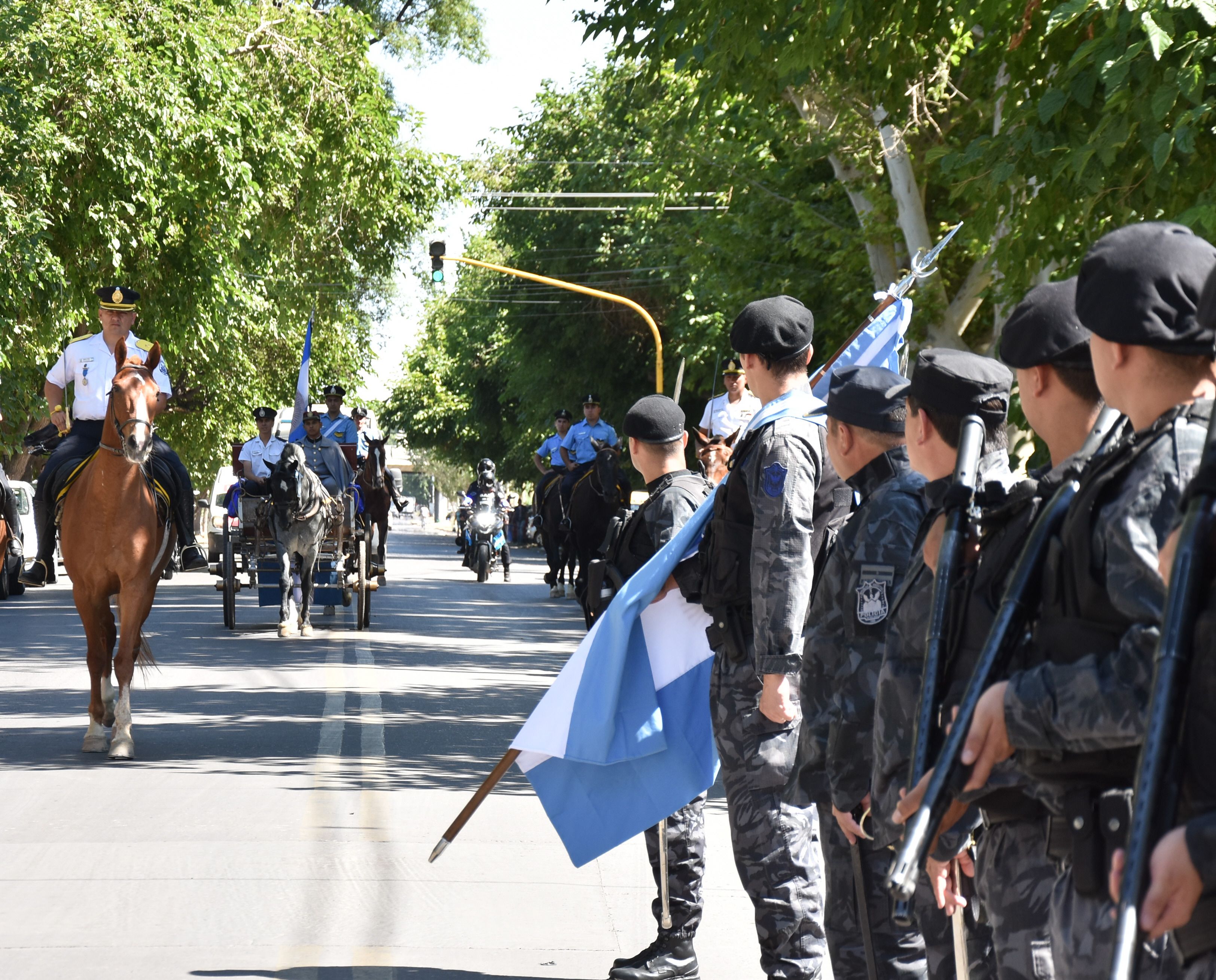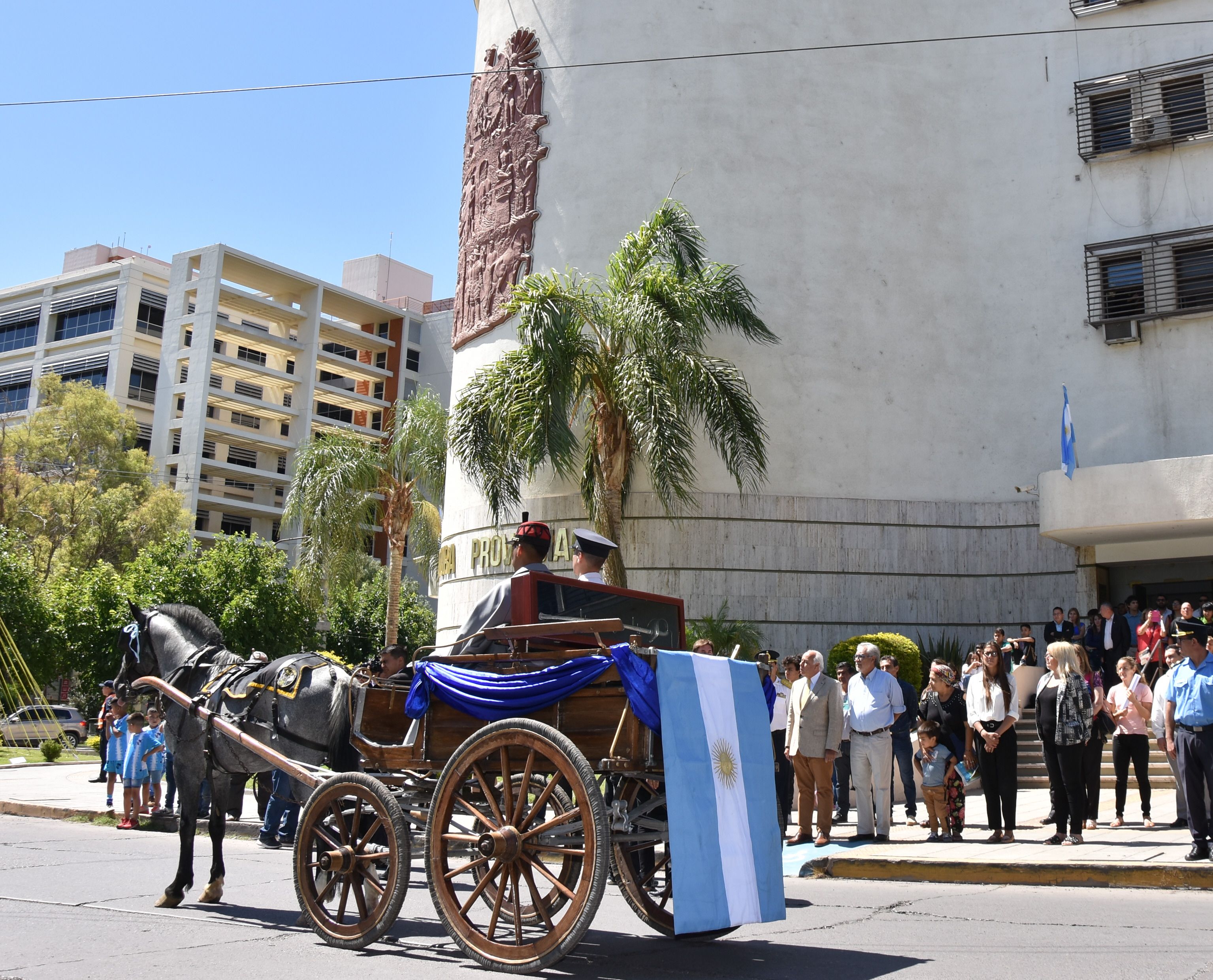 En la Escuela de Policía, y a las 9, arrancó la caravana, lugar donde desde hace 30 años estaba este sable en resguardo luego de que un tataranieto del exgobernador lo donara a esta Fuerza. Formados y en posición de firmes, los efectivos contemplaron el paso de Carlos García, comisario mayor encargado de llevar el arma hasta la carreta antigua que lo transportaría hasta el flamante museo.
