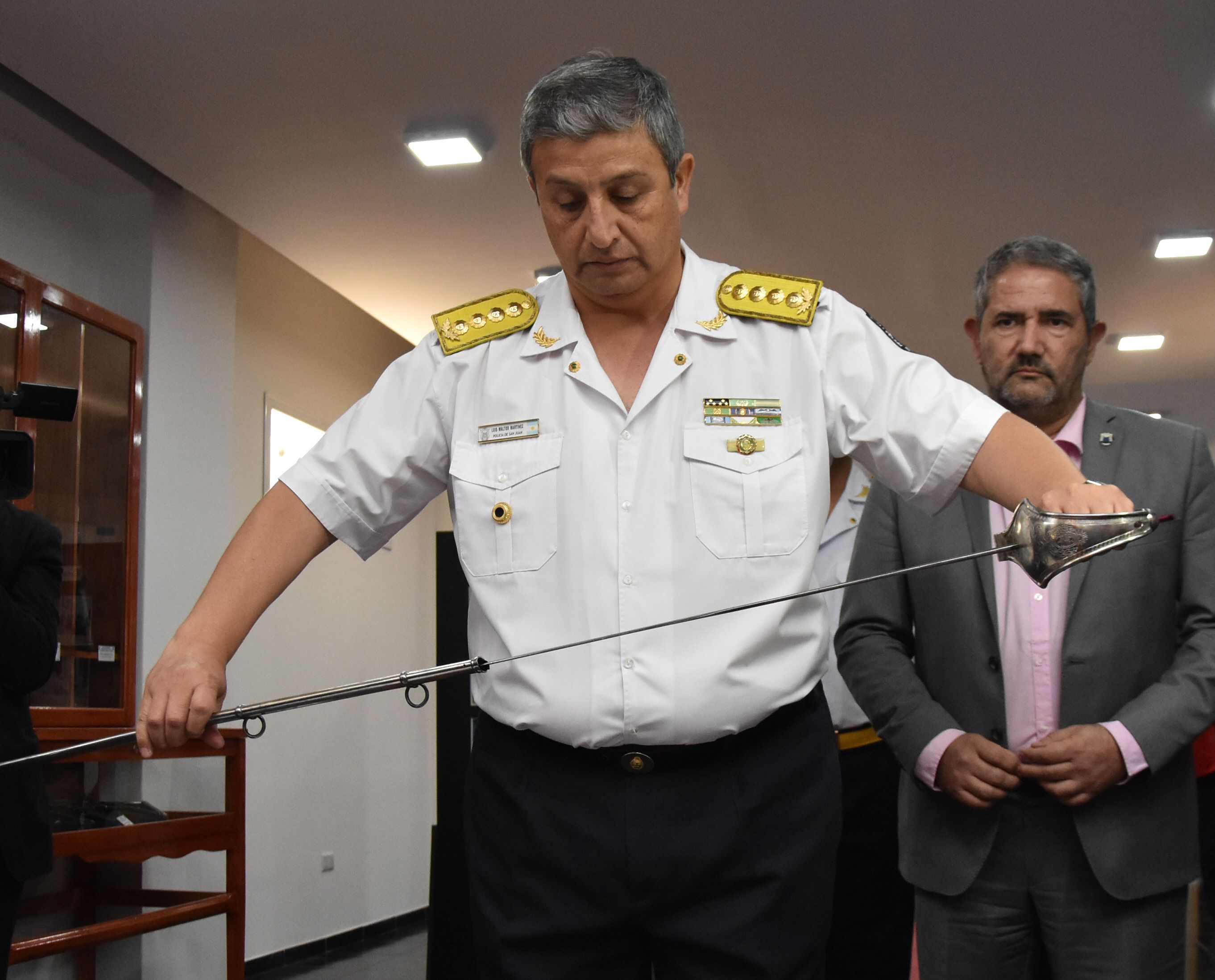 A las 11 el sable llegó a la Central de Policía para ser depositado en el museo. Fue el propio jefe Martínez quien desenvainó el arma para colocarla en la vitrina.