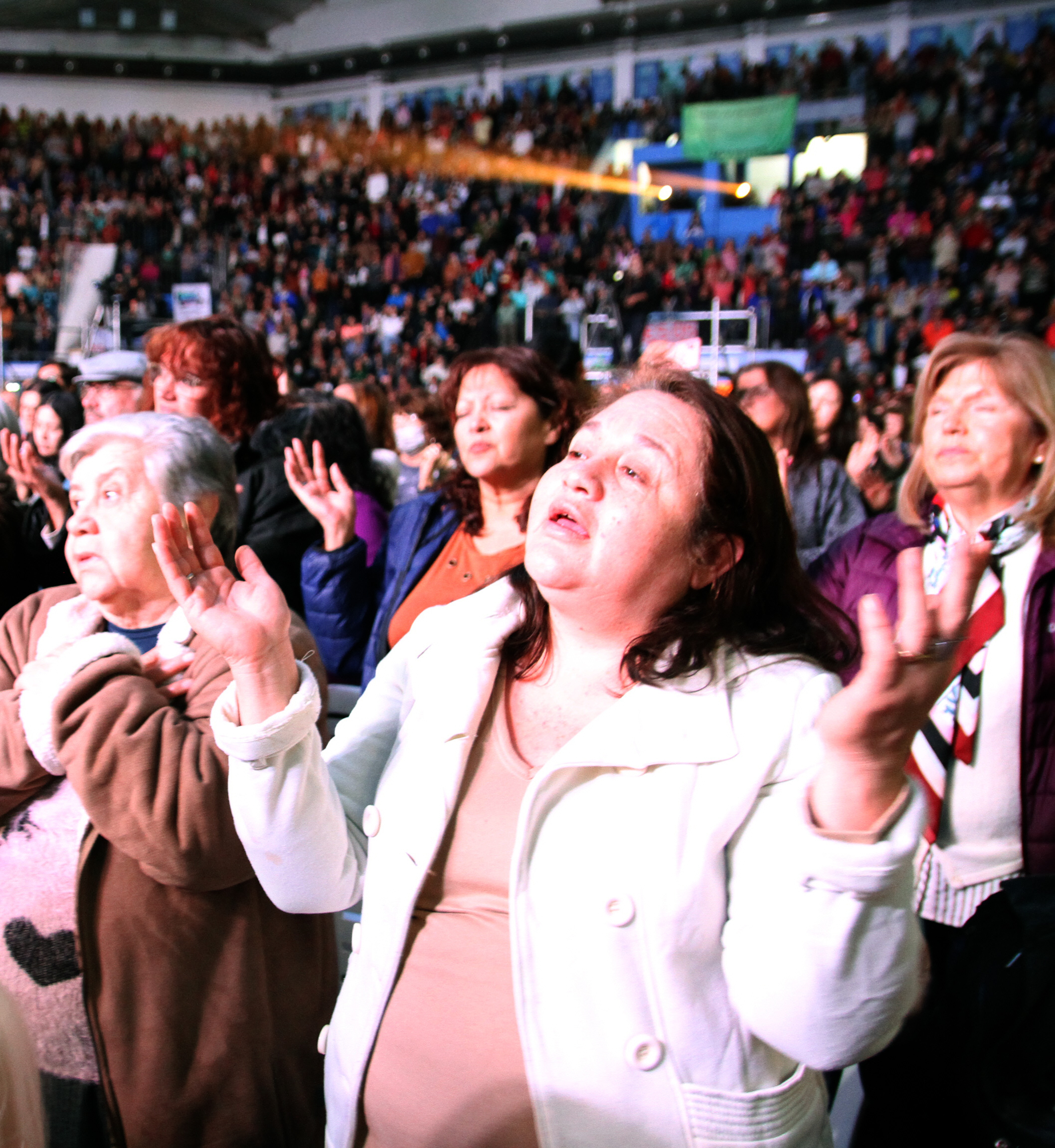 Las cientos de sillas que ubicaron en el sector de cancha del Estadio estaban ocupadas, al igual que las butacas de las tribunas habilitadas. Es por eso que los fieles que llegaron un poco más tarde tuvieron que conformarse con escuchar el recital desde los pasillos o detrás del escenario. Pero, pese a la multitud, el concierto tuvo una impronta muy diferente. Los espectadores lo escucharon en completo silencio y sin saltar. Sólo rezaron mientras los músicos interpretaron las canciones y levantaron las manos hacia el cielo para recibir el amor de Dios, tal como pidieron los misioneros que hicieran.