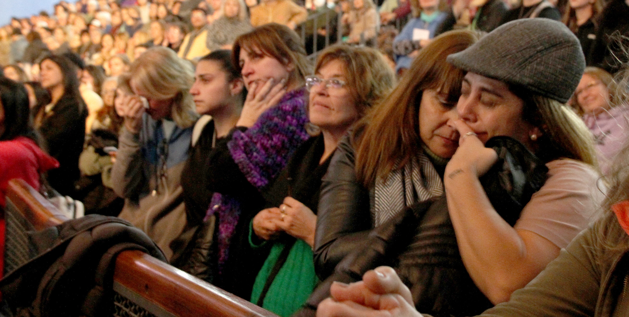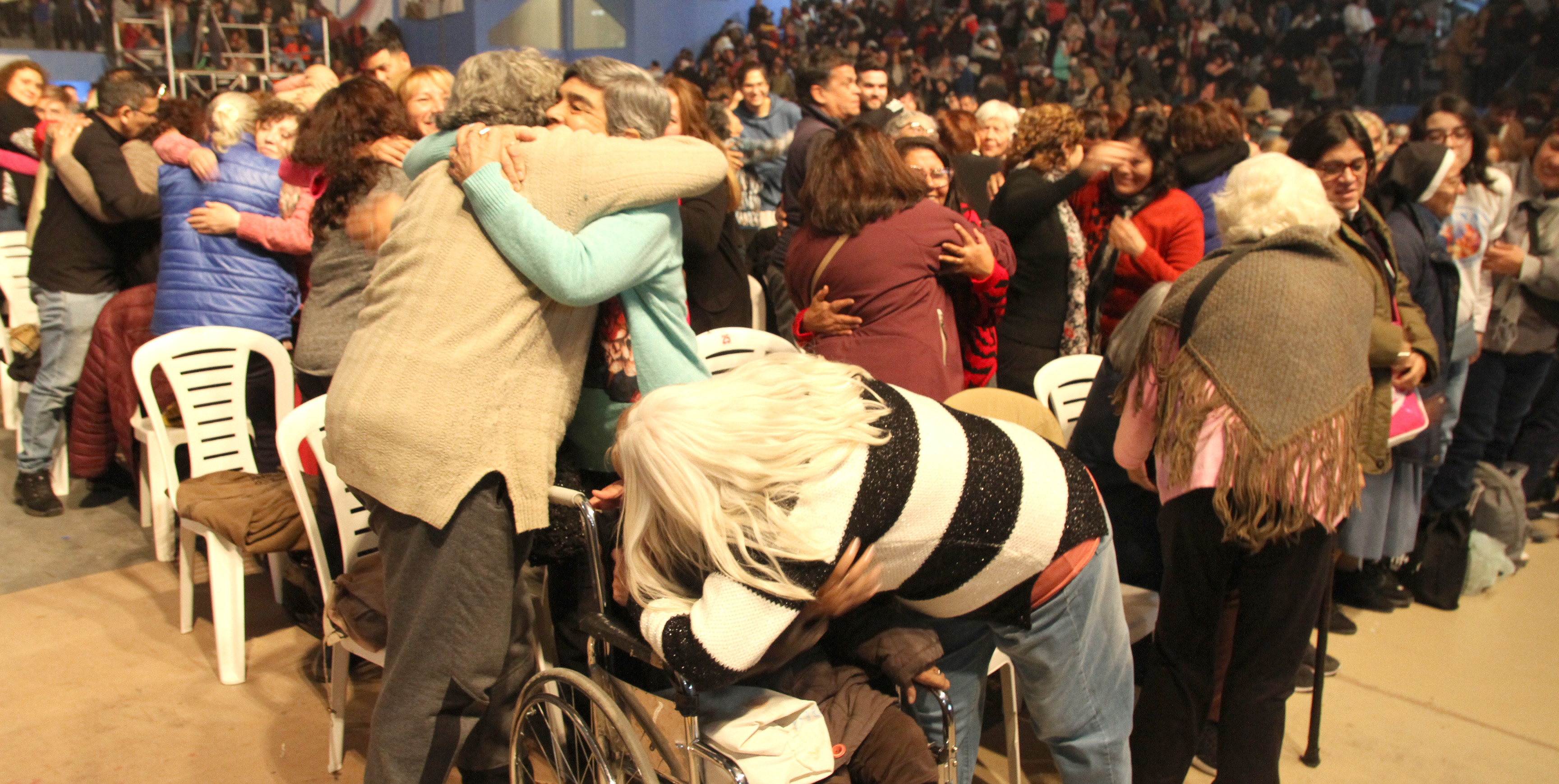 El único sonido que rompió de tanto en tanto el silencio, pero sin alterar la paz, fueron los aplausos de la gente al término de cada canción. Momento también en que dejaron salir su emoción. Es que los misioneros pidieron que levantaran las manos quienes habían perdido un ser querido en la pandemia, los que no llegaban a fin de mes con sueldo y los que querían recibir a Dios en sus corazones.