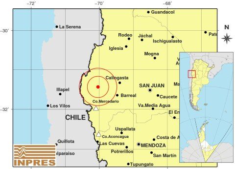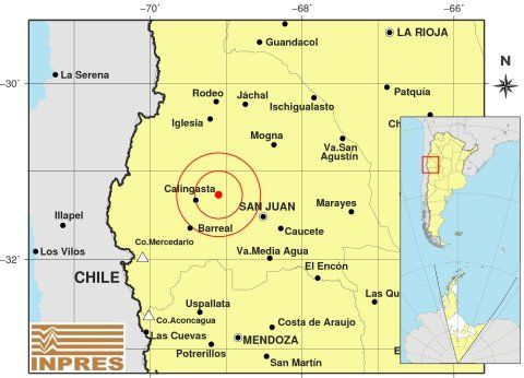 Por su parte, el segundo sismo fue a 62 kilómetros al Noroeste del Gran San Juan y a 29 de Calingasta.