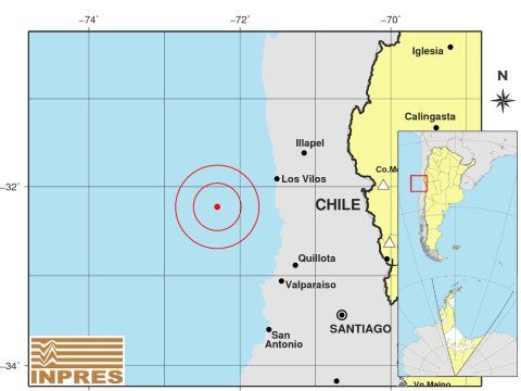 El epicentro se ubicó 321 km al Oeste de Mendoza; 359 km al Oeste de San Juan; y 77 km al Sudoeste de Los Vilos, en el país vecino.