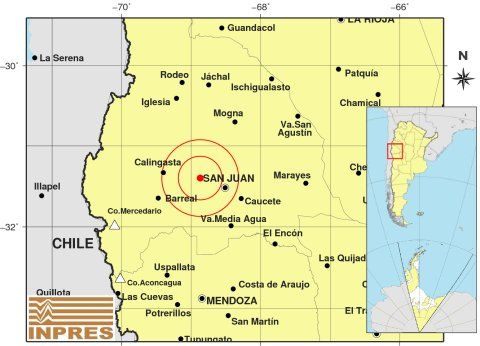 El epicentro se registró 36 kilómetros al Oeste de San Juan y a 51 kilómetros al Este de Calingasta, a una profundidad de sólo 9 kilómetros. Y tuvo una Magnitud de grado 3.