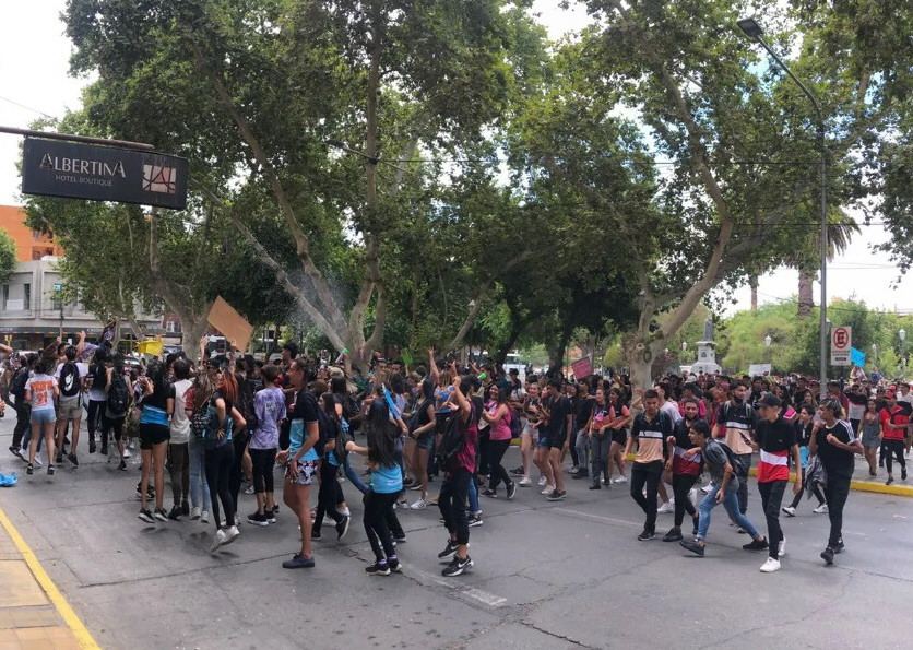 Más de 300 jóvenes del último año de secundaria se congregaron ayer desde el mediodía en la plaza 25 de Mayo, para festejar el final del ciclo lectivo 2021. Se habían congregado por las redes y acudieron estudiantes de escuelas de todo el Gran San Juan, con sus remeras identificatorias. Luego repitieron el festejo en la fuente de la Plaza del Bicentenario.