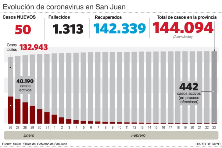 El Ministerio de Salud Pública informó ayer que hubo 50 nuevos casos de covid, según se desprende del parte diario. La cifra, que confirma la contracción en la curva de contagio, ahora eleva el acumulado en pandemia a 144.094 infectados; a la vez que la positividad ayer fue del 11%.