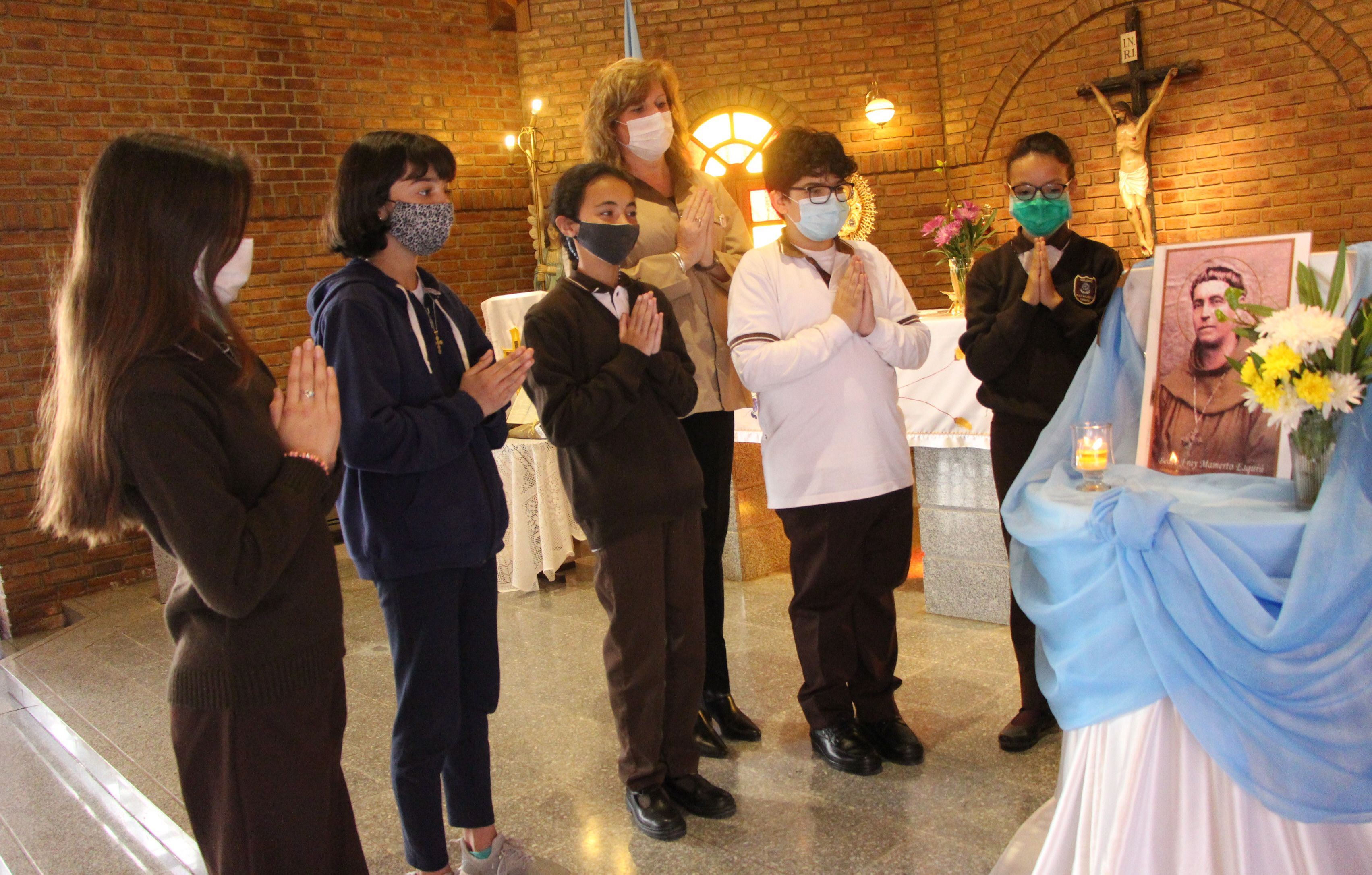 Mientras en el patio continuaba el alboroto de los más chiquitos por la representación teatral, en el interior de la capilla reinaba un silencio absoluto, pese que había varios alumnos de primaria en el interior. Era el grupo que a esa hora le tocó ingresar al templo a rezar frente a la imagen del beato, en el marco de la vigilia de la ceremonia de beatificación que arrancó a las 8 y que finalizó a la medianoche, y en la que participaron todos los docentes y alumnos, excepto Nivel Inicial.
