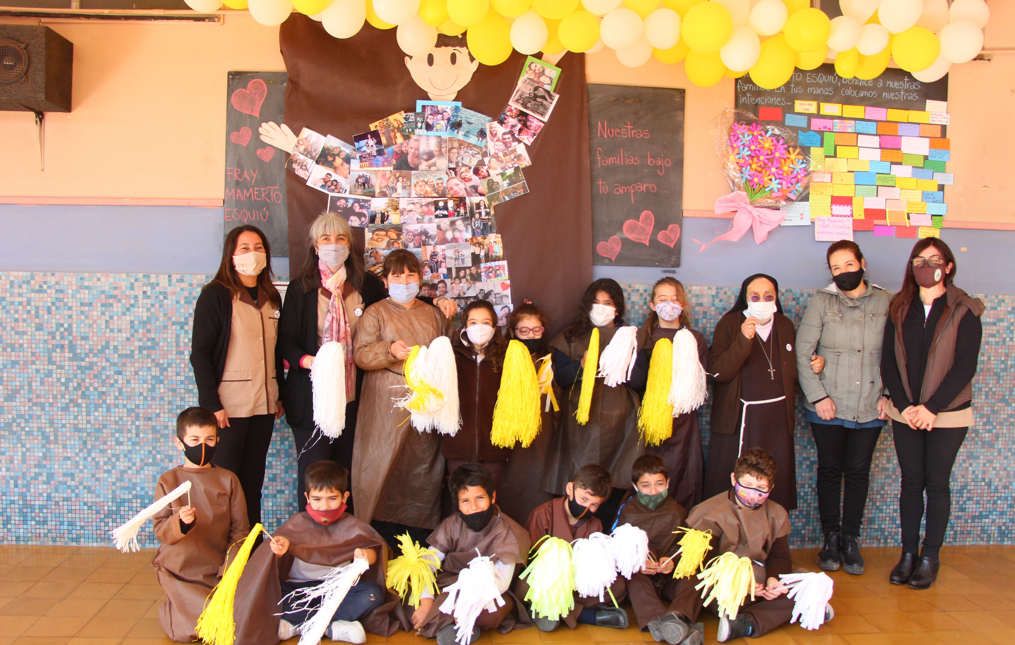 Desde antes de ingresar al edificio escolar se pudo percibir el clima de fiesta. Las rejas frontales estaban cubiertas con cientos de dibujos y leyendas que tenían la imagen de Fray Mamerto. Fueron los que elaboraron los alumnos de Nivel Inicial en el marco de la beatificación, y para que la gente que pasara por la vereda conociera parte de la vida del beato. Ya adentro, no hubo rincón que no hiciera alusión al acontecimiento, aunque fueron los alumnos de tercero B y C los más entusiastas. La mayoría asistió a clase vistiendo una túnica marrón para encarnar al fraile. Algunos de ellos, además, se caracterizaron con un fin determinado. Fue el caso de Francisco Leuzzi, quien dijo que se vistió de fraile para pedirle al beato que "así como sanó a una niña de una enfermedad incurable, haga desaparecer el covid-19 para salvar a todos".