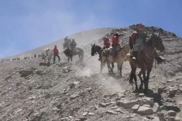 Hacia la siesta el desafío fue permanecer lúcidos y despiertos arriba de la mula. Es que, luego de El Espinacito, el trayecto los llevó a las vegas de Gallardo. Este sendero también tiene descensos empinados y con muchas piedras sueltas. Fue en este sector donde algunos participantes se cayeron de sus mulas. Otros se tiraron, por recomendación de los entendidos porque tenían la montura suelta y existía la posibilidad de un accidente mayor.