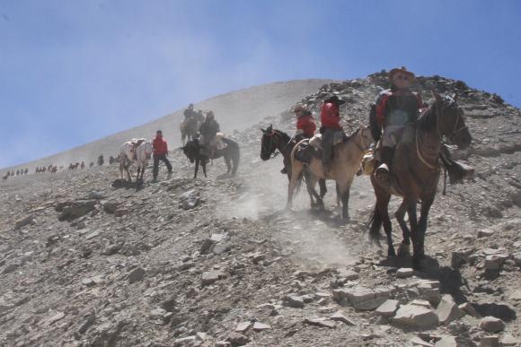 "Preferí bajar caminando, confío más en mis pies", dijo el actor Juan Palomino, uno de los expedicionarios que optó por descender El Espinacito caminando y no cabalgando, opción que varios participantes decidieron emular. Ayer fue la jornada más complicada por su dificultad geográfica y porque hubo que andar a lomo de mula durante casi 9 horas, con el cansancio físico que esas largas jornadas provocan. También fue el tramo en el que un par de expedicionarios y una gendarme se cayeron de sus mulas, fueron atendidas por los médicos del Cruce, aunque no hubo lesiones de gravedad.