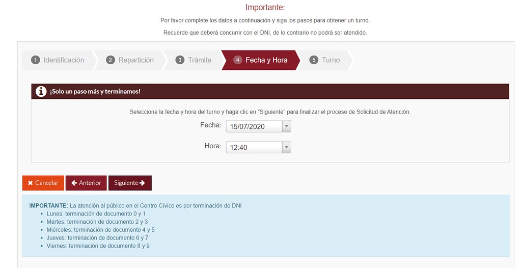 6. Seleccioná la fecha y horario en el que deseás realizar el trámite y hace click en “siguiente”.