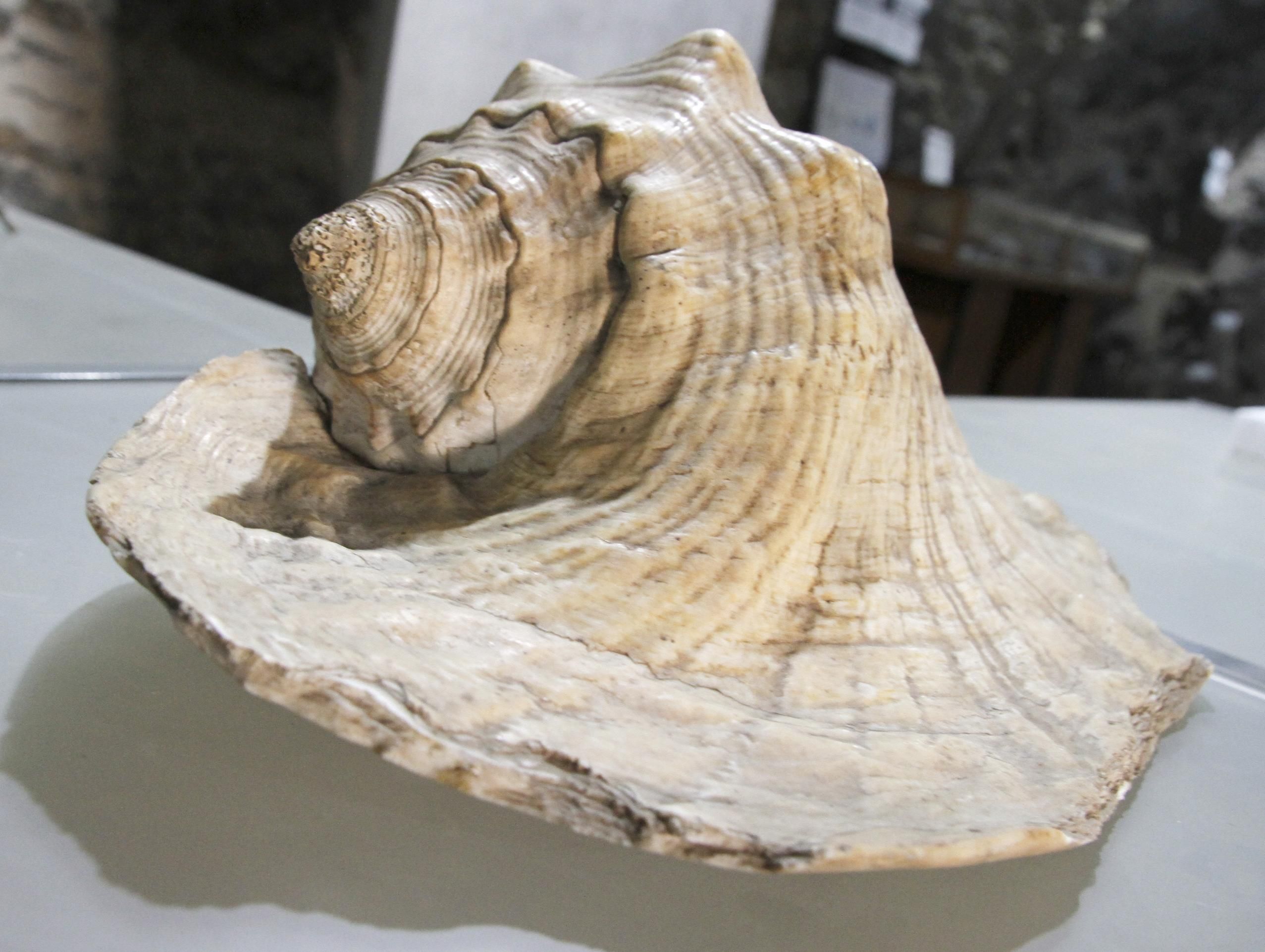 Tiene 30 centímetros de diámetro y pesa más de 1 kilo. Se trata de uno de los tantos caracoles que recibió Domingo Castro en forma de donación. Y es justamente el más grande de todos. Este caracol perteneció al periodo Holoceno, es decir que pueden tener hasta 9.000 años de antigüedad. Debido a que no es un elemento tan antiguo se puede trasladar sin problemas legales de un lugar a otro. ‘Estos elementos tienen un valor, de catálogo, de 7.000 pesos aproximadamente’, agregó.
