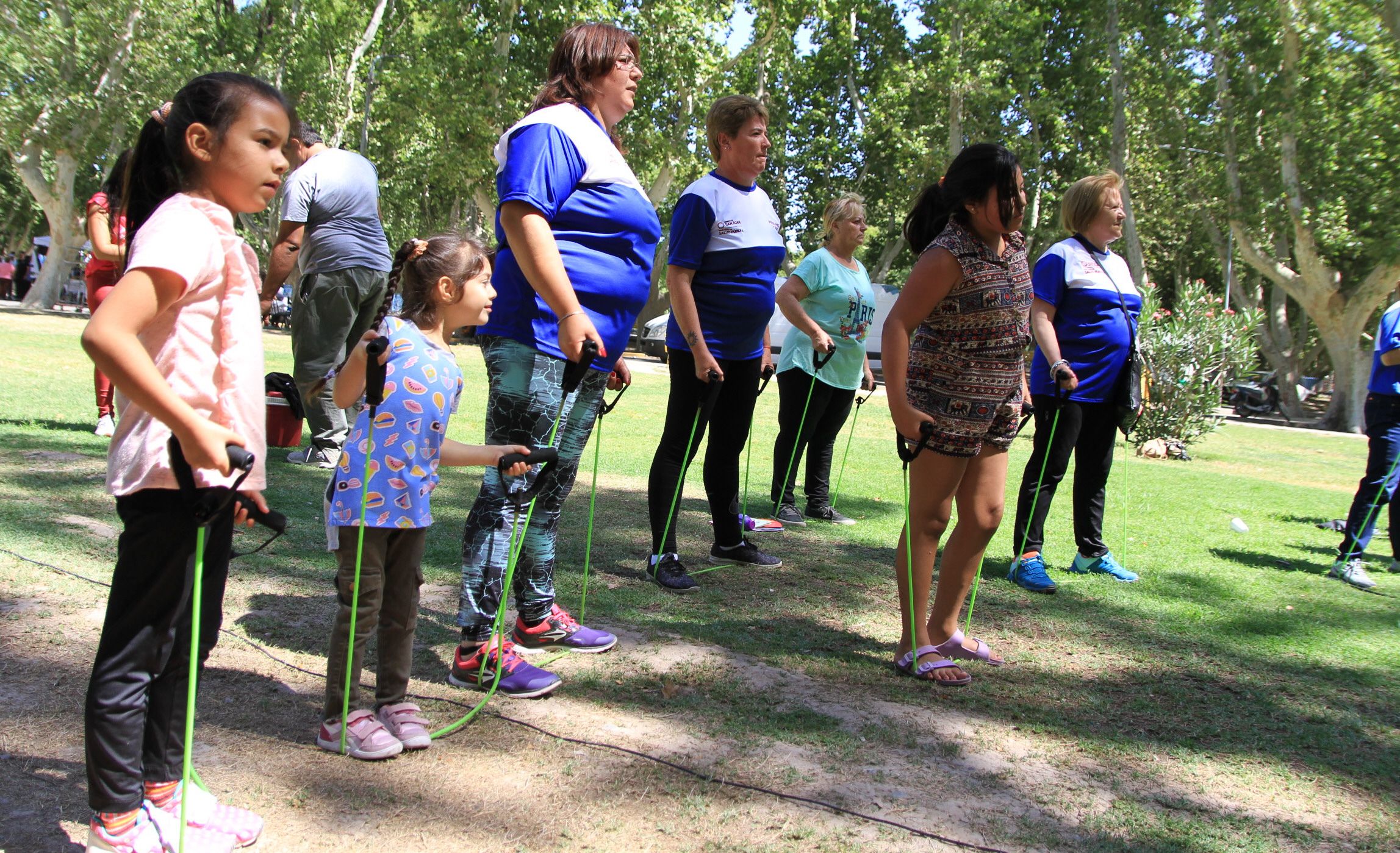 Algunos rincones del Parque de Mayo fueron el escenario de la actividad que tuvo el objetivo de promover la actividad física, como método de prevención de algunas enfermedades. La actividad se dividió en 7 estaciones en las que las personas hicieron diferentes tipos de ejercicios. Como si siguieran una rutina de un gimnasio y hasta utilizando elementos como pesas, pelotas y bandas elásticas movieron su cuerpo sin parar. Hubo ejercicios que pusieron a prueba la habilidad, la fuerza y el equilibrio, entre otras cosas.