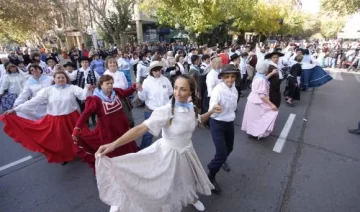 A la pareja tanguera, luego de muchos aplausos y vivas, le siguió un grupo formado por más de 100 integrantes de las 38 pistas de la salud de Capital y por bailarines del Ballet de la Tercera Edad, dirigido por Jorge Pechuán. Eran los encargados de bailar el pericón y, a falta de suficientes hombres, la mayoría de las parejas que invadieron la calle estaban formadas sólo por mujeres: unas vestidas de cortesanas y otras disfrazadas de hombres para acompañar a las primeras.