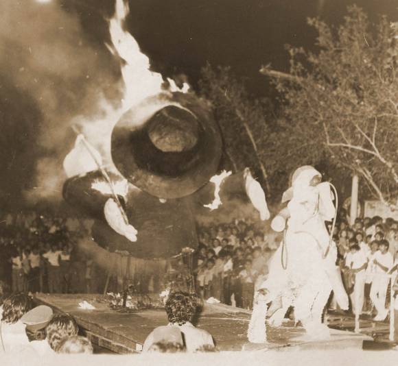 "No hay datos claros, pero según los periódicos de la época, la quema del Rey Momo comenzó a realizarse en San Juan a fines del siglo XIX", cuenta María Julia Gnecco, directora del museo Gnecco. Y dice que en ese momento y durante la primera mitad del siglo XX, Momo se representaba como un hombre alto y gordo que estaba de pie. El gran monigote que quedaba consumido por las llamas se armaba con papel y trapos y se quemaba en la calle, en la jornada de cierre del carnaval. Además se le colocaba en el medio bombas de estruendo armadas en un receptáculo de metal relleno con pólvora que, además de explotar, provocaba chispas que divertían a la gente.