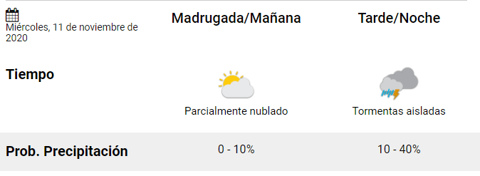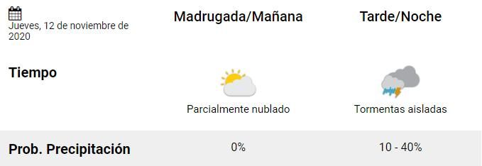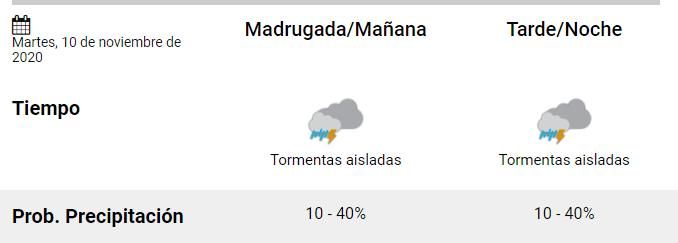 *Martes: el pronóstico indica que las tormentas se presentarán durante toda la jornada con una temperatura máxima de 30 grados.