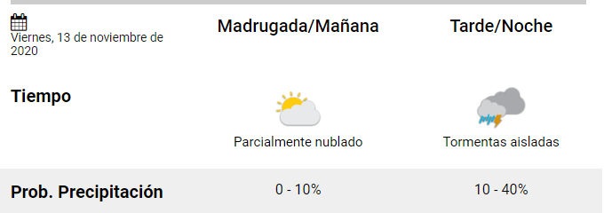 *Viernes:  se repetirían las condiciones del día jueves aunque con una máxima que no superaría los 27 grados.