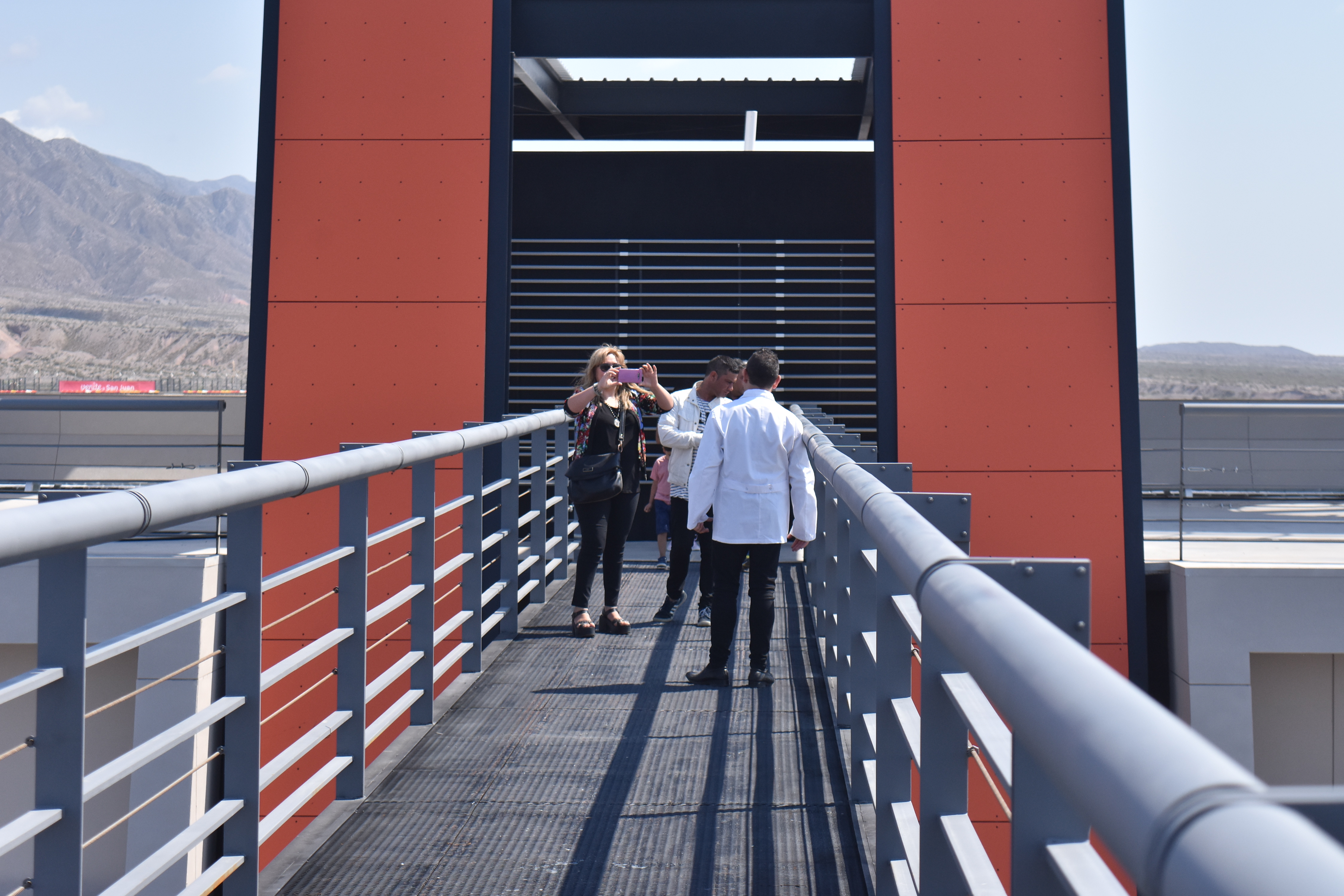 La pasarela que conecta boxes con la Tribuna Vip llamó la atención de todos. Barbarita Páez, Paisana Nacional de la Tradición, fue la primera que se animó a subir para "chusmear" qué había arriba de los boxes. Es que nunca pensó que al entrar al Villicum iba a quedar tan sorprendida. Sosteniéndose la capa y la falda de su vestido azul, la soberana jachallera hasta posó para fotos que posteriormente publicará en sus redes sociales. "Desde arriba -Tribuna Vip- se observa la majestuosidad de este autódromo. No me lo imaginaba tan grande", dijo por su parte Carlos Orozco, el maestro de la escuela Mercedes San Martín de Balcarce, de Rawson.