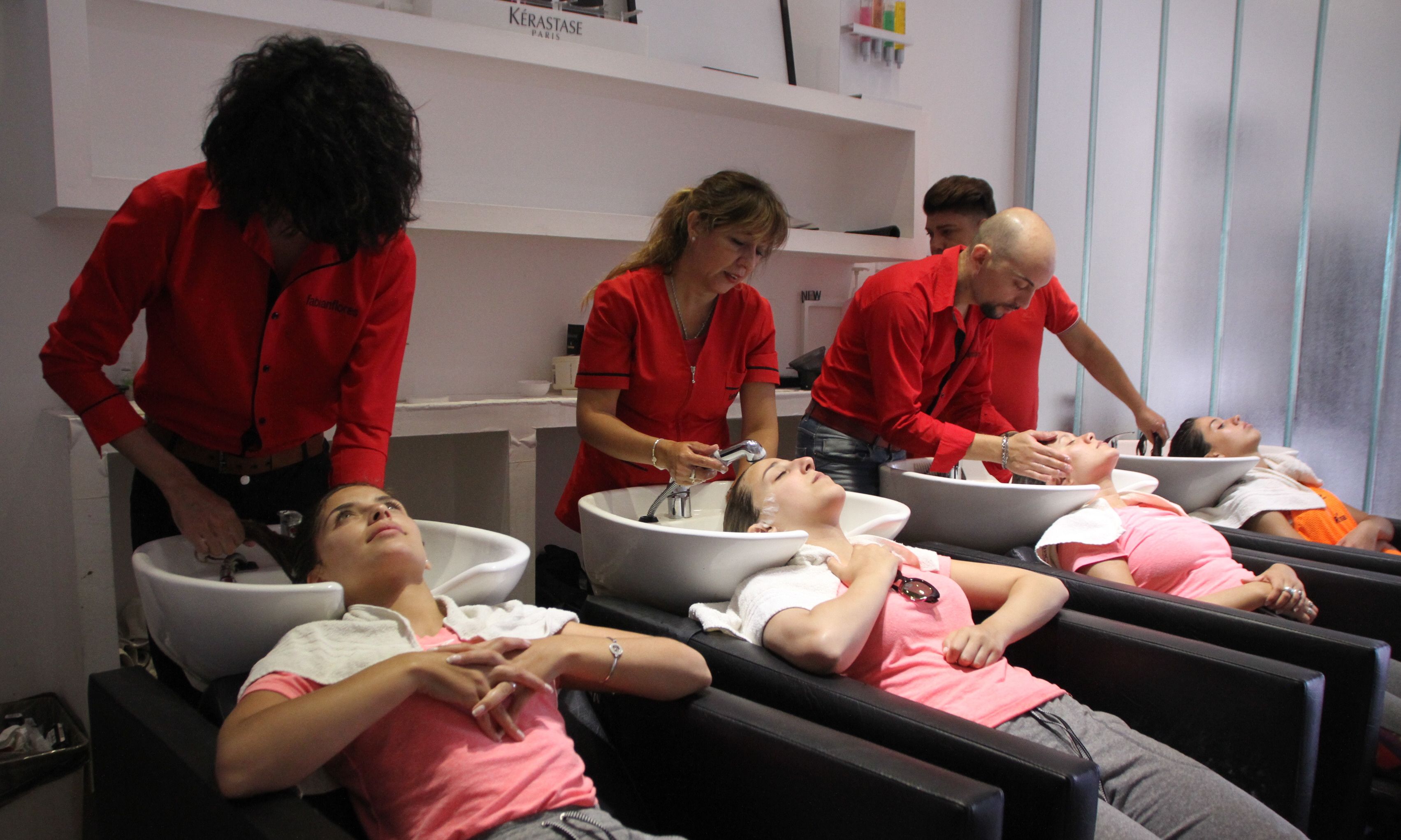 A las 14 en punto las chicas llegaron a la Peluquería para comenzar a producirse para la noche.