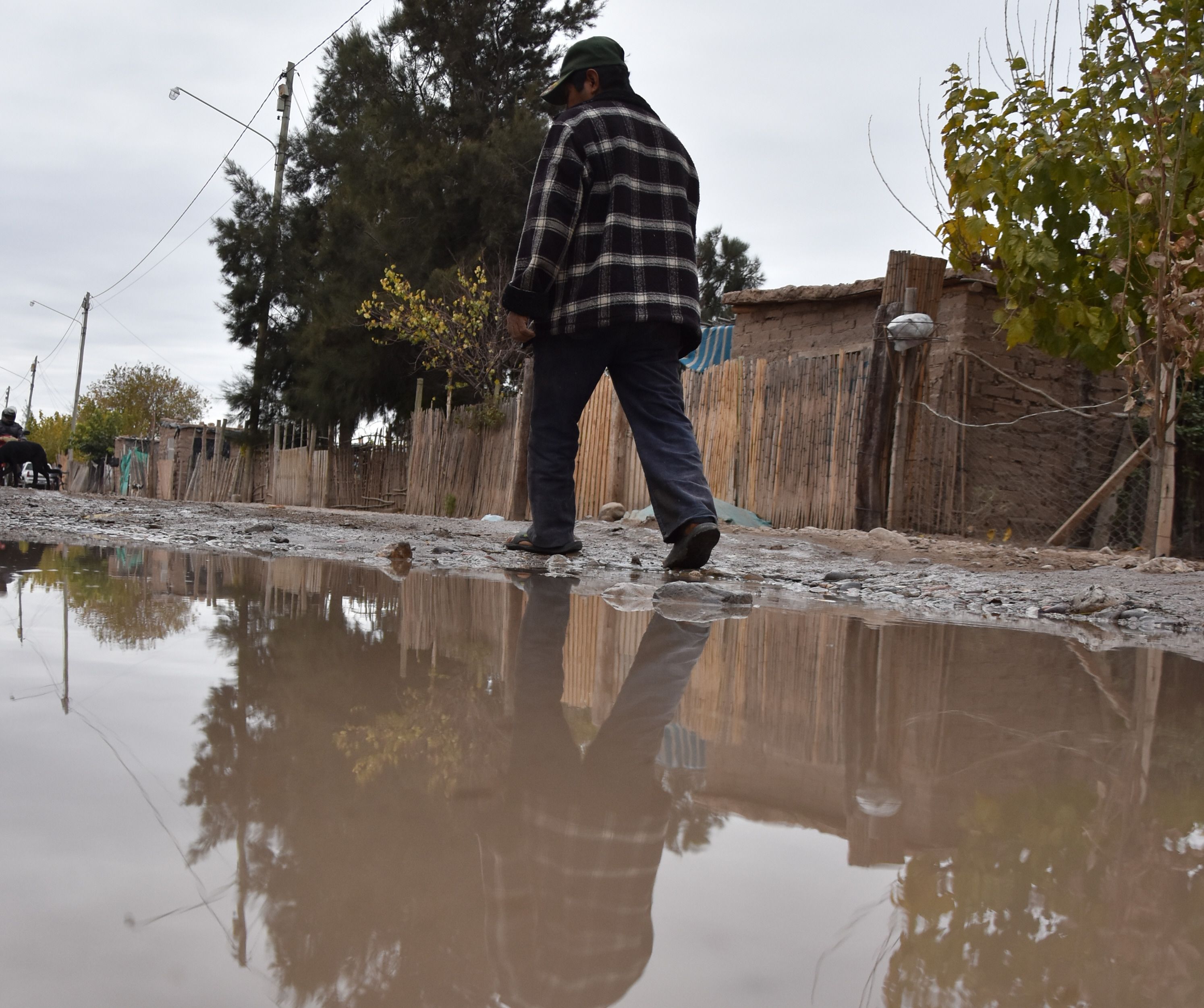 La calle principal del asentamiento es de tierra y está llena de pozos y charcos. En esta zona, las motos y las bicicletas transitan a baja velocidad, mientras que algunos vecinos no pueden ni salir de sus casas porque dicen que es frecuente que el agua ingrese a las viviendas. Incluso, hay algunos que dejan los autos fuera del vecindario porque no pueden guardarlos en sus casas ya que la calle parece un río.
