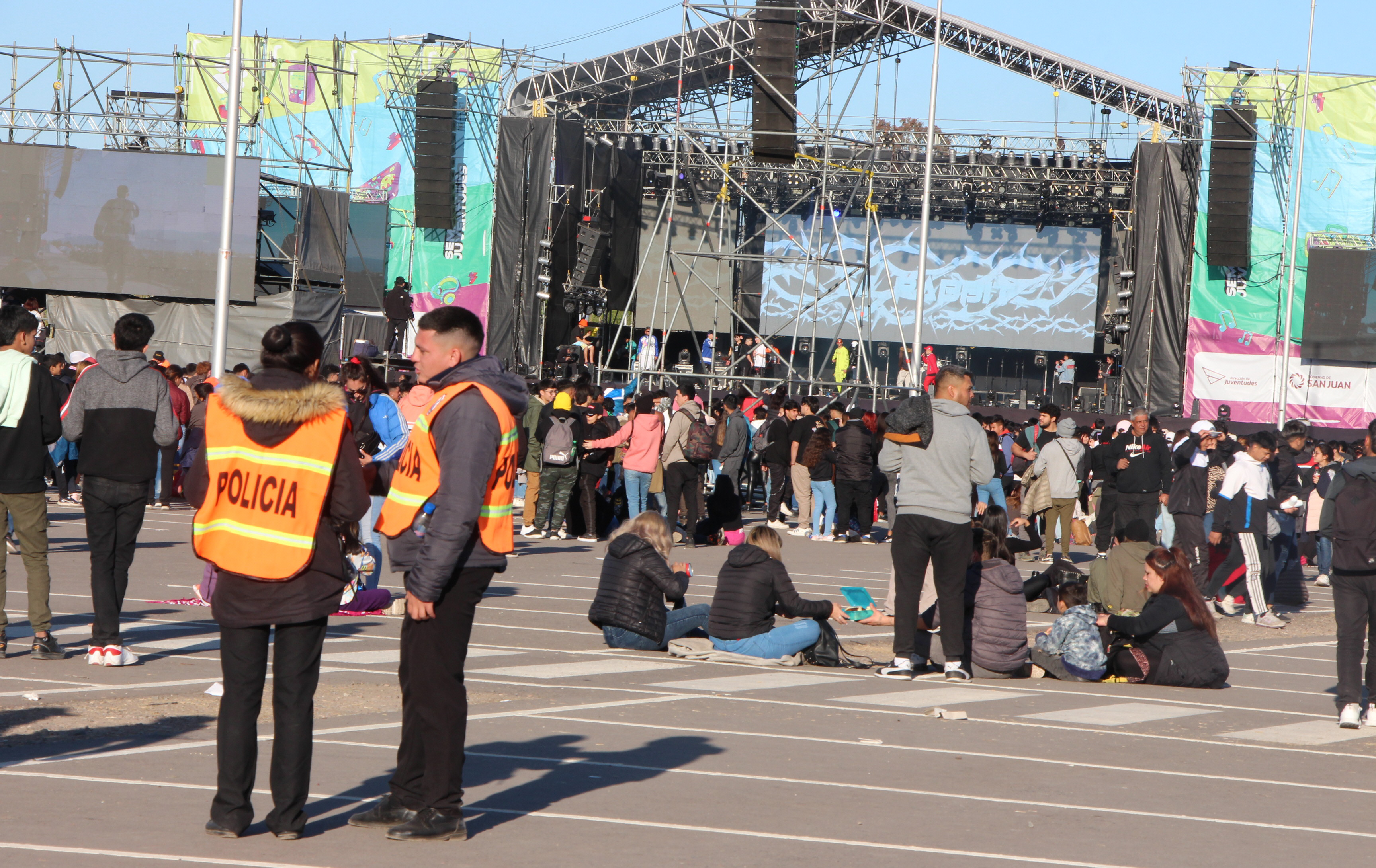 Frente a los diferentes escenarios, tanto el principal como los alternativos, también se mantuvo el orden durante toda la tarde noche, especialmente por la presencia policial desplegada por todo el sector del predio donde se desarrollaron las actividades. Sólo una vez tuvieron que intervenir para mantener el orden, aunque la causa no fueron desmanes o mal comportamiento. Fue cuando varios chicos que estaban haciendo el ‘pogo’ frente al escenario principal durante el show de ‘Vía 66’ comenzaron a descompensarse. Fue en este momento donde el orden y la buena onda brilló más que nunca. Los chicos abrieron paso para que ingresaran los efectivos de la Policía y personal sanitario para asistir a los descompensados e hicieron una cadena para hacerles llegar botellas de agua a los demás que comenzaban a sentirse mal. Y hasta fueron obedientes. Es que el líder de ‘Vía 66’ les dijo ‘disfruten del espectáculo cuidando al de al lado que es tan importante como uno mismo. Y cuiden el agua, no la tiren, miren que estamos en crisis’.