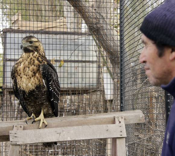 "Cuando llegó a su jaula, el águila ni siquiera podía subirse a la percha de madera. Pero hoy tiene un apetito voraz, come gallinas y conejos y ya se ve imponente pese a que es un ejemplar juvenil, de poco más de un año. Luego entrará en rehabilitación para lograr su adaptación a un hábitat natural", contó Olivares.