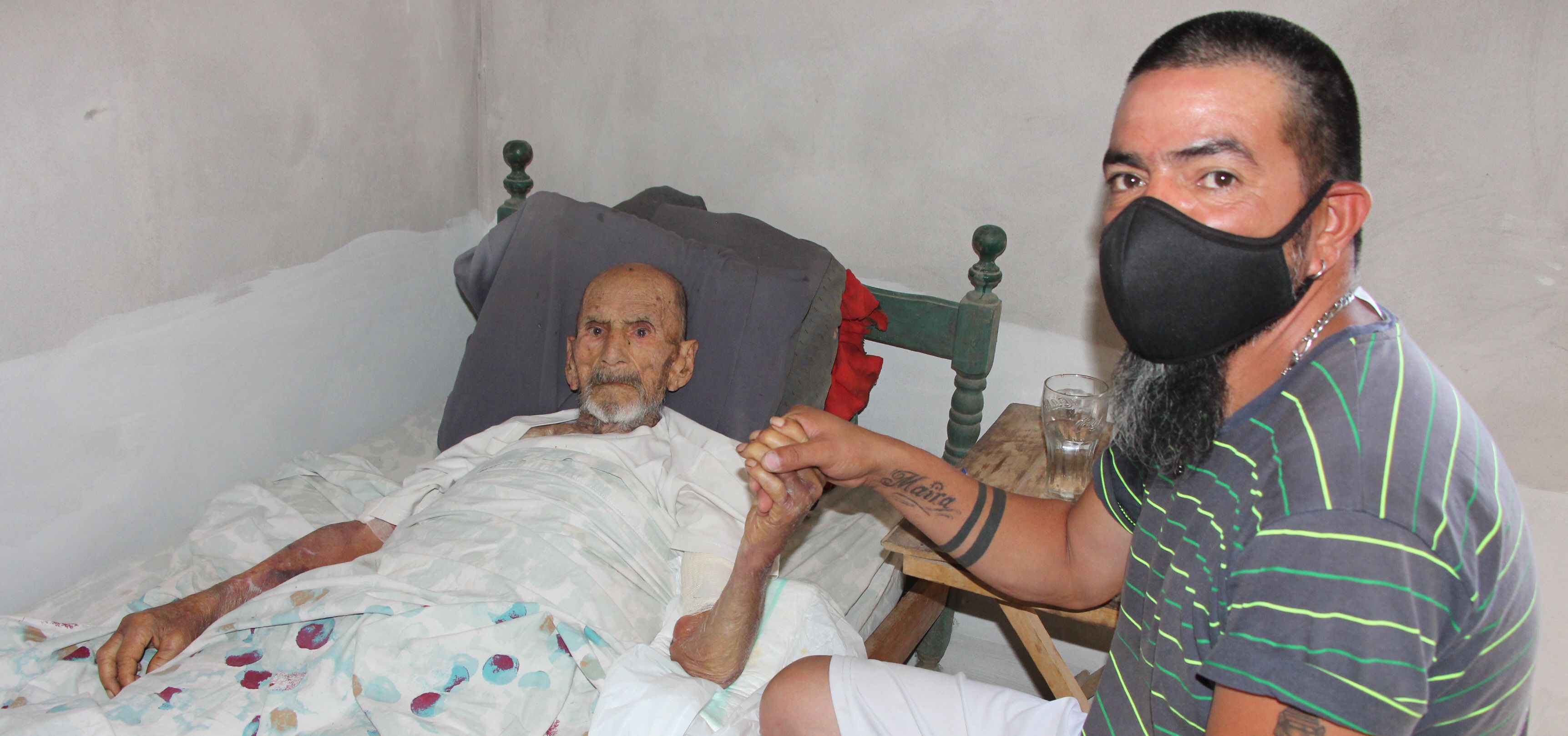 Manuel tiene una lucidez impecable, aunque le cuesta hablar. De todos modos se esforzó para contar parte de su historia y para, principalmente, terminar con los comentarios de que Ramón lo maltrata o lo descuida. "Cada día le doy gracias a Dios por tener a mi sobrino que me cuida con cariño. El pobre hace lo que puede con lo poco que tenemos. Hoy me hizo una sopita porque no tenemos nada de mercadería. Seguro que mucha gente piensa que me maltrata, que se gasta mi jubilación y que no me atiende. Yo le digo que se quede tranquilo, que deje que la gente hable, que yo sé cómo son las cosas", dijo el anciano mientras acomodaba cada brazo sobre un pañal descartable para no manchar la sábanas con el líquido desinfectante que más temprano Ramón le colocó en las llagas.