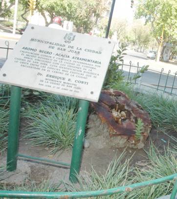 El pasado 30 de noviembre la gente que caminaba por la intersección de Libertador y Sarmiento se paró para presenciar, con tristeza, el talado del aromo negro que sobrevivió a inundaciones y terremotos por más de dos siglos, pero que no pudo contra los hongos y las termitas. Hoy se detiene para ver, con alegría, los brotes que ya alcanzan los 10 centímetros.