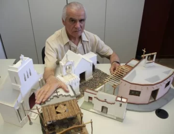 La luz que entra por el vidrio que hace de fondo de la capilla de María Auxiliadora da toda la sensación de que el interior de la pequeña maqueta, perfectamente reproducida a escala, estuviera iluminado con luz propia. Su creador, Oscar Alberto Robles, la sostiene frente a la ventana y explica que ese fue el primer modelo que construyó cuando, después de un grave accidente de tránsito que casi le cuesta la vida, se puso a fabricar esa capilla con MDF, vidrio y otros materiales, para cumplir la promesa de llevarla hasta el cerro Pie de Palo, cerca de donde se encuentra el santuario de Ceferino Namuncurá. ‘Caminamos casi dos horas por el borde del cerro con los chicos del grupo de montaña de la Escuela Industrial, porque ellos me acompañaron a llevar la capillita. Y ahí la dejamos, para que los que volvieran, tuvieran un punto de referencia donde llegar‘, contó Robles.
