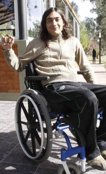 La vida de Eduardo giró 180 grados una tarde de verano, cuando apenas tenía 17 años. Estaba en el Dique de Ullum y desde la playa salió corriendo para largarse de cabeza al agua, a toda velocidad. Pero la profundidad lo engañó y literalmente aplastó su cuello al chocar con un obstáculo. Se quebró las 4ta y 5ta vértebras de la cervical. ‘Perdí el conocimiento y quedé flotando boca abajo; me rescataron mis amigos. Estuve muchos días en coma, tres meses internado y sufrí una operación muy grande: con clavos y placas me fijaron la columna para poder sostener la cabeza. Me enteré de lo que pasó casi al mes, cuando me desperté. Fue un momento muy fuerte, muy angustiante’, recordó.
