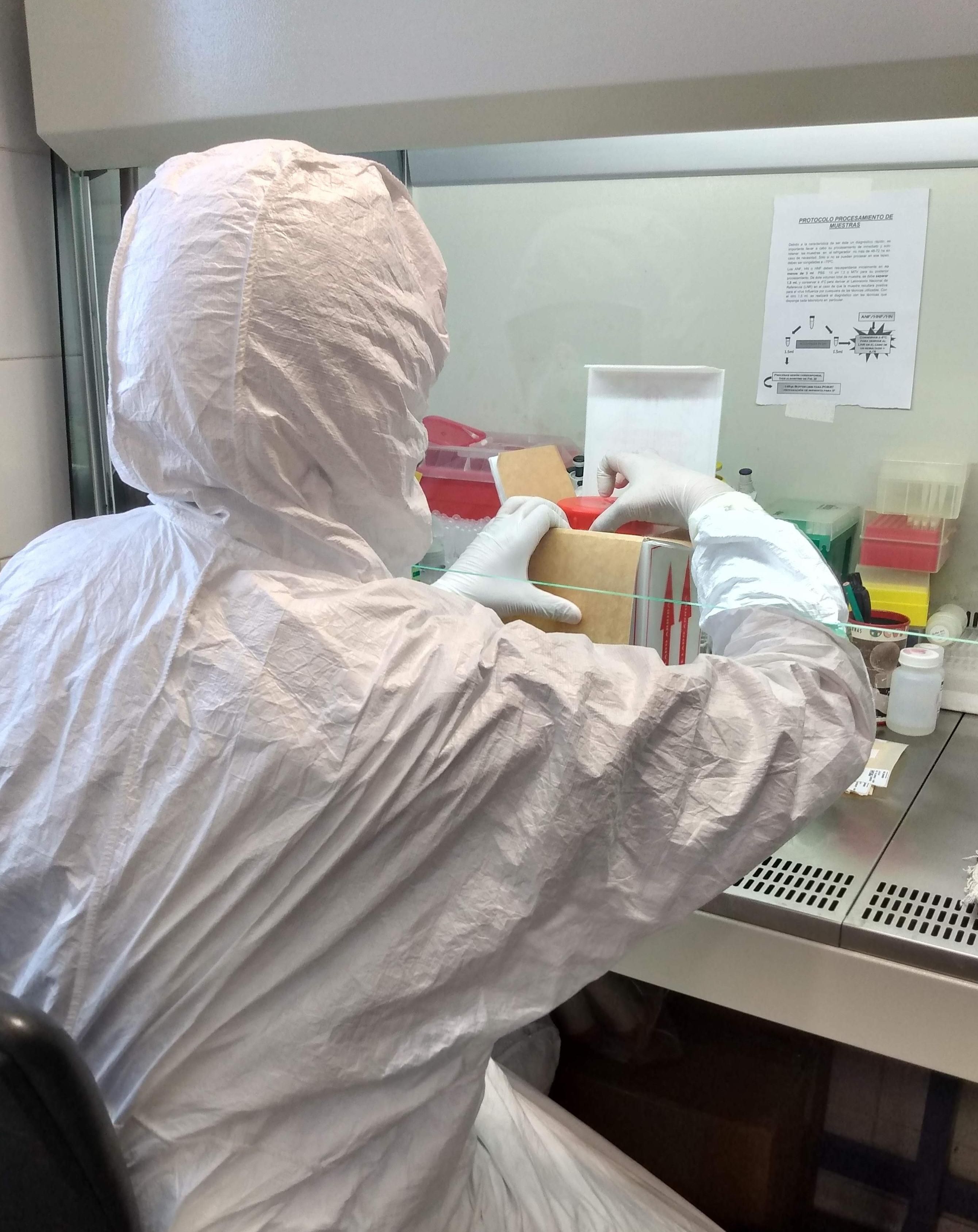 Cuidados. Las muestras son analizadas dentro de la campana de bioseguridad y el personal usa guantes.