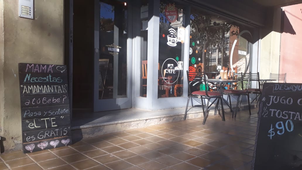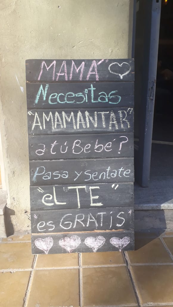 "Mamá, ¿necesitás amamantar a tu bebé? Pasá y sentate. El té es gratis". Con ese mensaje colocado en un cartel sobre la vereda, desde Valentino Café – Bar invitan a las mujeres con hijos pequeños a dar la teta en el local, con una infución que corre por parte de ellos.