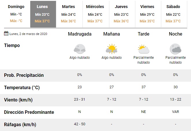 Para el martes, la máxima alcanzará los 36°C y para el resto de la semana, oscilará entre los 35 y 37 grados.
