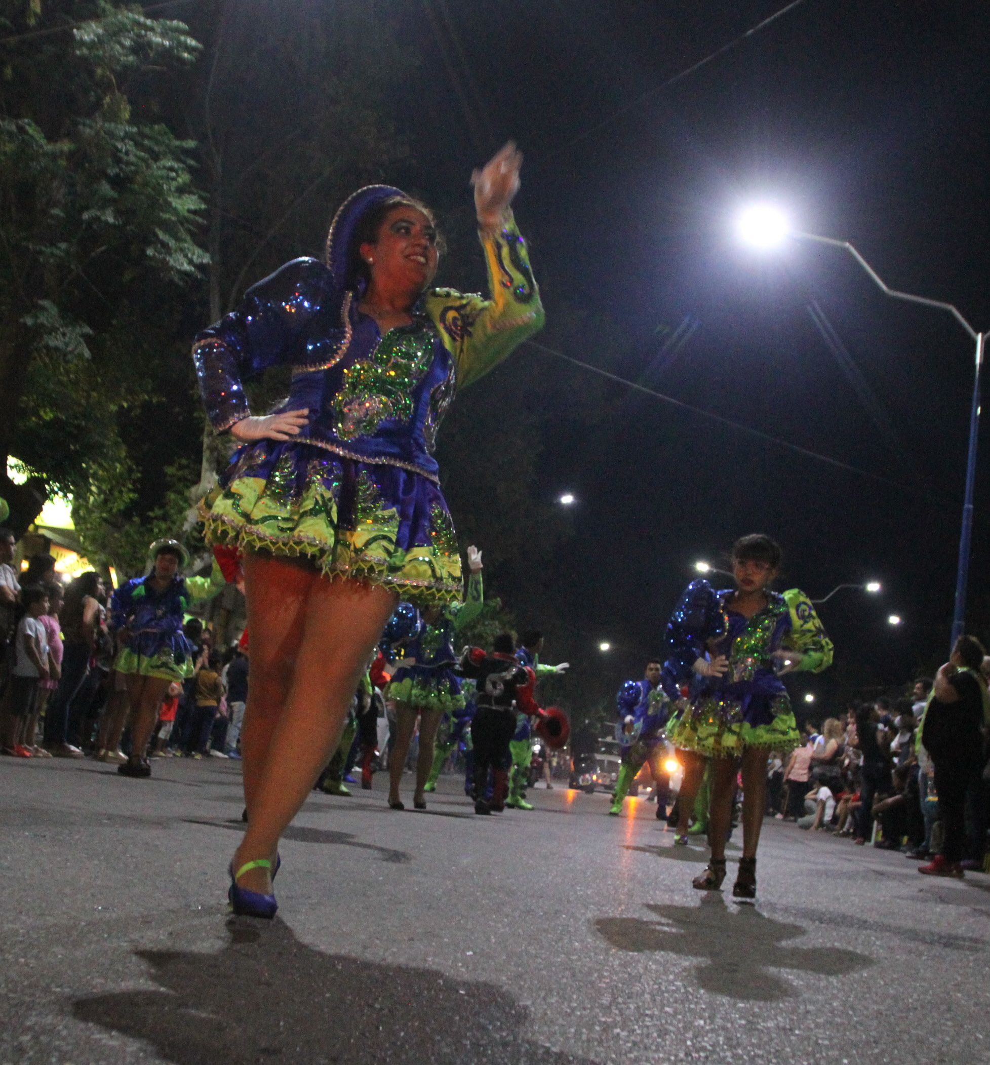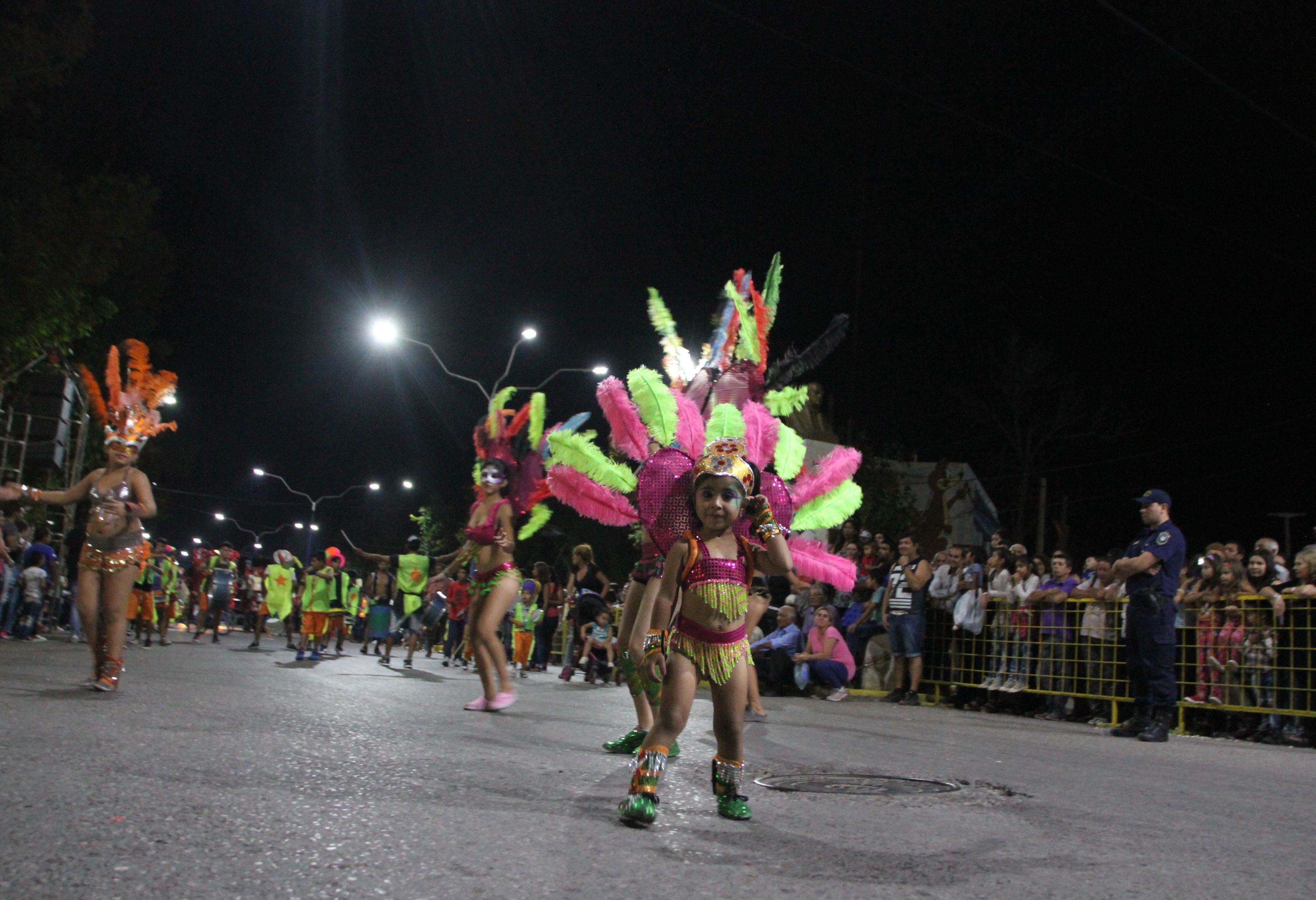 Tras las bombas de estruendo que anunciaron el inicio del carrusel, desfilaron las diferentes escuelas de danzas del departamento, seguidas de los Caporales de mi Tierra, los danzantes de la Virgen de Copacabana que llegaron desde Mendoza para participar del evento. Frente al palco oficial hicieron una coreografía que cosechó la ovación de los presentes.