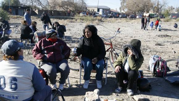 El reclamo por casas comenzó sobre las 19 del martes y tras cortar la calle, las manifestantes se instalaron en el baldío. Con ramas, cañizos y neumáticos hicieron grandes fogatas, que les permitieron soportar a duras penas el crudo frío de la noche. Algunas armaron carpas, otras improvisaron refugios con nailon y las que pudieron se envolvieron en frazadas.