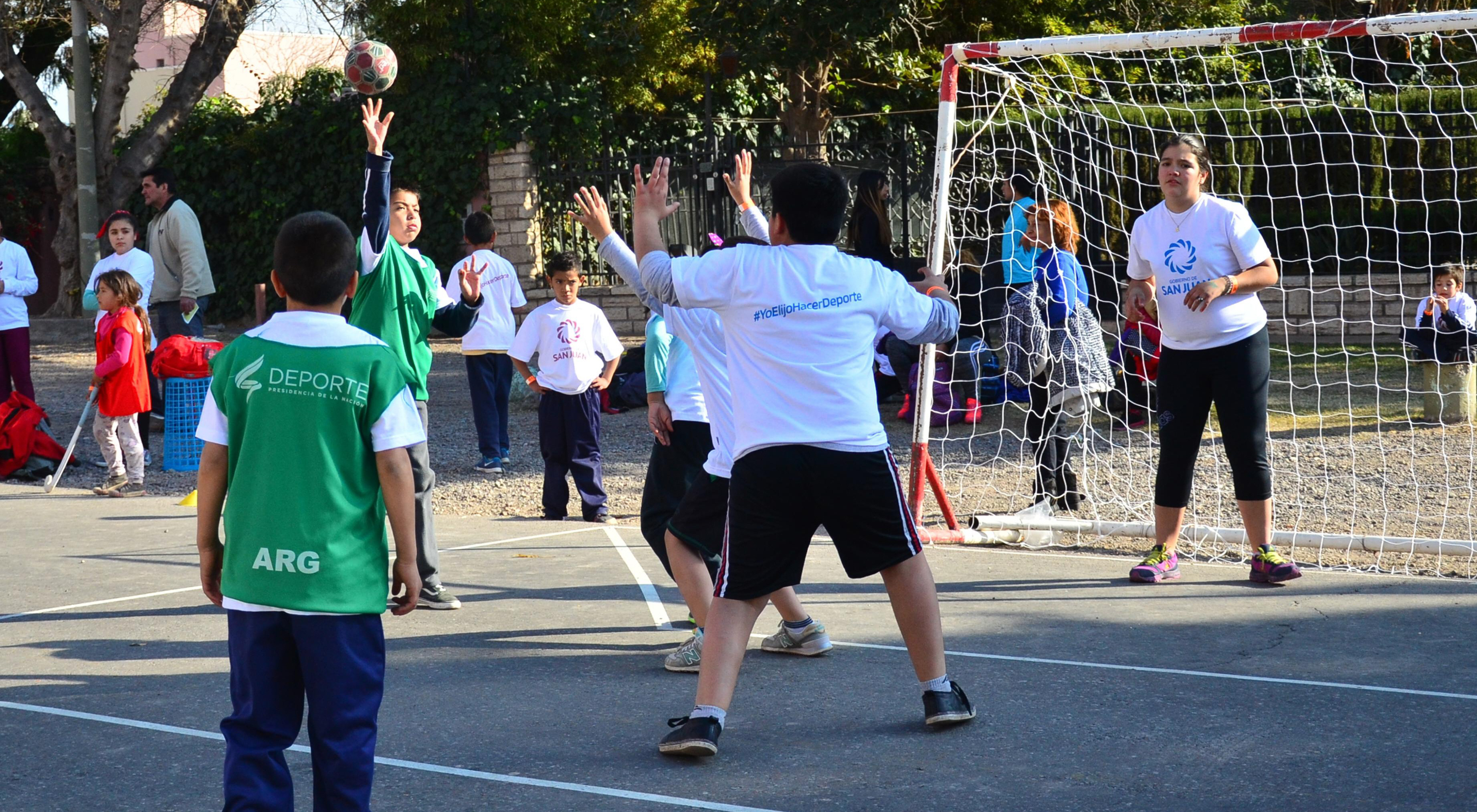 Los chicos que asistieron a la Expo Deportiva armaron equipos mixtos para participar de un partido de handball.
