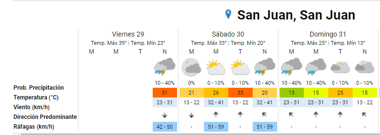 Además, se mantendrá el viento procedente del cuadrante Norte y algunas ráfagas podrían alcanzar los 50 kilómetros por hora. El sentido del viento comenzará a girar mañana sábado al mediodía. También pueden ocurrir fuertes ráfagas de viento Sur, de hasta 60 kilómetros por hora y así comenzará un limitante en la temperatura. Si bien será muy elevada la mínima, con 21 grados, se aguarda que la máxima sea de 33 grados.