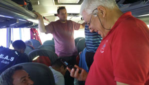 En plena ruta, con el paisaje patagónico que empezó a hacerse más intenso, los veteranos de la Guerra de Malvinas que viajan para regresar a las Islas, empezaron la segunda jornada con más impactos emocionales. Muchos se contactaron con sus familiares y fue imposible contener las lágrimas.