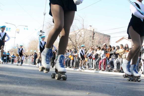 Cada tanto una explosión de banderitas celestes y blancas caía sobre la gente que se ubicó sobre una de las manos de la avenida Yrigoyen, desde la rotonda de calle Colón y casi hasta el puente de la Avenida de Circunvalación. Los chicos eran los que más festejaban, mientras los grandes se las ingeniaban para sacar fotos pese a las vallas de contención que limitaban el paso. En la vereda de la plaza, un puesto de locro al paso no daba abasto vendiendo a 13 pesos la porción, que muchos eligieron saborear "de parados" mientras veían el desfile. Y no faltó el funcionario desprevenido que preguntó dónde regalaban el locro, al ver a la gente con su bandejita en la mano.