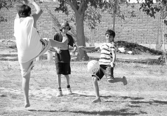En otro sector, un grupo de nenas se cansó de jugar al básquet y no sabía qué otra actividad hacer para pasar el rato de manera entretenida. Y a una de ellas se le ocurrió jugar al fútbol, pero trasladando la pelota de básquet con la mano. Hubo algunas caídas durante el desarrollo del partido, lo que divirtió aún más a sus protagonistas.