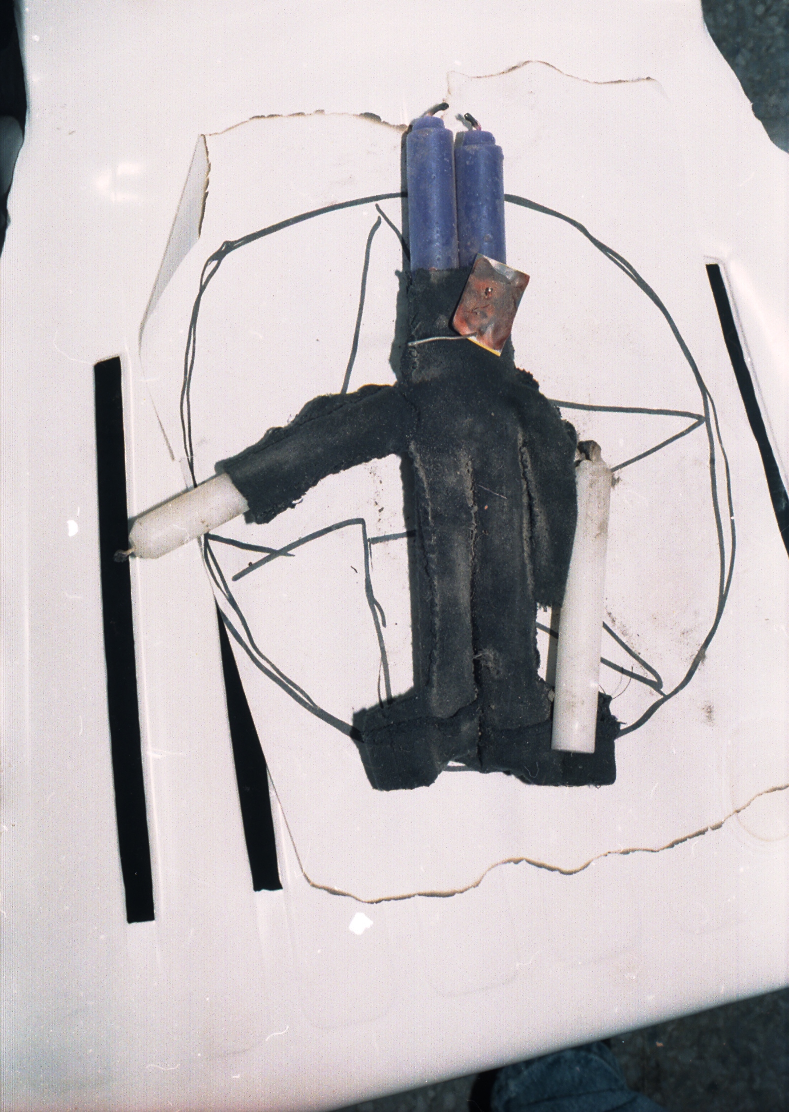 Dos días después, jóvenes de Caucete encontraron elementos de ritual en el cerro Pie de Palo. En este caso se toparon con figuras de círculos, triángulos y estrellas con velas de colores, ubicados al costado de una huella. Luego de que el caso trascendiera, un grupo de chicos de la religión católica se reunieron a rezar en la zona y una vidente llegó al lugar para analizar el maleficio, del que nunca se conoció el destinatario.