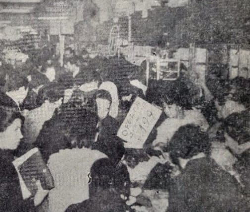 La publicidad se repitió durante días y la respuesta de la gente fue constante y llamativa. Pantalones, camisas, corbatas, sacos, colchas y más. Todo a precios irrisorios.