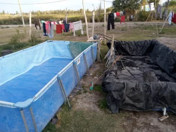 Dos piletas de lona casi secas sirven para graficar la difícil situación que viven unas diez familias que residen en un sector del Médano de Oro. Es que vienen pidiendo hace años por el servicio de agua potable y si bien el municipio los venía abastenciendo tres veces por semana, en este último tiempo ese abastecimiento se redujo a un solo día, por lo tanto se las deben ingeniar para hacer rendir al máximo el agua.